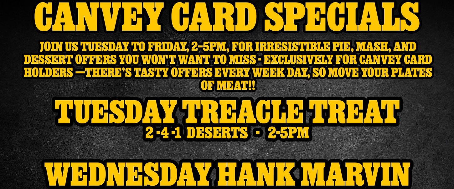 Wednesday, Hank Marvin - 15% OFF Double & Triple Pie & Mash